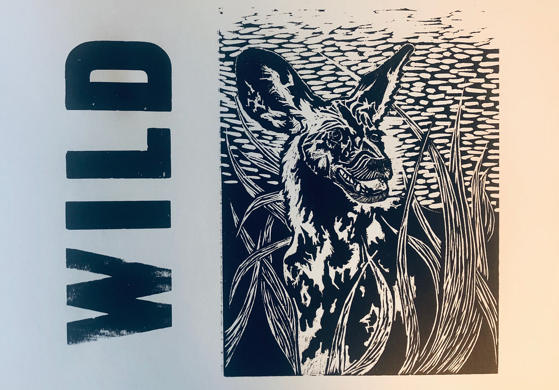Wild African Dog Woodblock Print